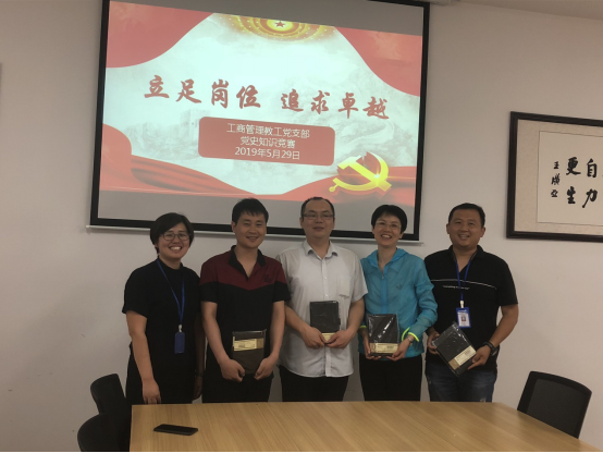 为庆祝建党九十八周年,重温党的光辉历程,传承党的光荣传统,继承和发扬党的优良作风,激励教师党员深入学习党章党史,了解红色文化,树立实现“中国梦”的自觉性和自信心,以优异成绩献礼祖国七十华诞,5月29日下午,由工商管理教研室党支部举办的“扬立足岗位,追求卓越”党章党史知识竞赛决赛在2号楼209会议室举行。必赢626net入口唐云副院长,工商管理教研室党支部书记李裔辉,教研室全体党员老师参加了此次活动。