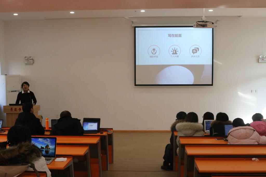 为提高青年教师的多媒体课件制作水平和微课制作水平,切实增强青年教师教学技能,2018年12月28日下午,必赢626net入口邀请邀请双创学院张芳老师在2-208室进行了专题培训交流。必赢626net入口副院长唐云老师及必赢626net入口无课的青年教师参加了此次培训交流会。
