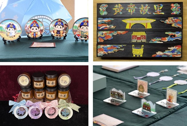 此次文创展上的作品以“寻根探源,解码黄帝文化”为主题理念,选取黄帝与黄帝故里景区相关的元素为创意来源,设计和创作了“轩辕印韵·故园寻踪”旅游文创打卡系列印章“华夏初章·故里印记”、“华夏时叙伞录”、“故里丰登·五谷祥镜”、“轩辕凝钥·钥匙扣”等系列文创作品约500件。其中“故里珐琅·四象镇尺”,采用掐丝珐琅工艺,通过细腻的掐丝工艺再现了黄帝文化的深邃与奥妙。“轩辕四时香铭——香薰蜡烛”是24节气甲骨文香薰蜡烛。它以传统24节气为核心,融合甲骨文的古老文字符号与香薰蜡烛的现代生活美学,让使用者在芬芳中感受千年文明与自然时序的交融。参展游客和消费者对此次展出的作品较为喜爱,在展出第一天,学生作品成交收益达到约1000元。