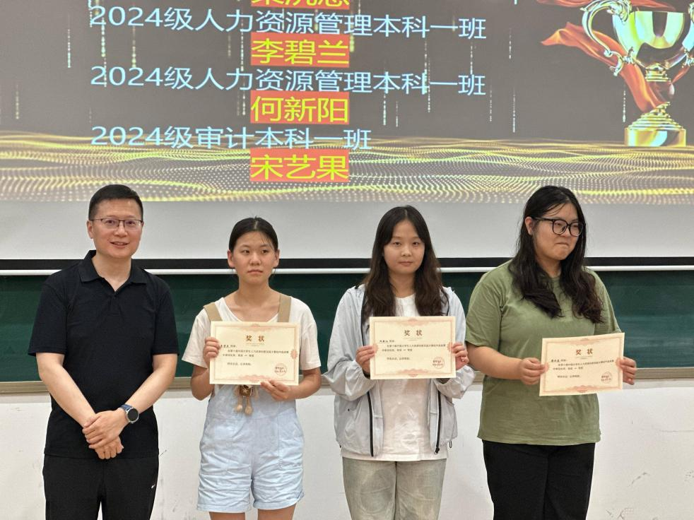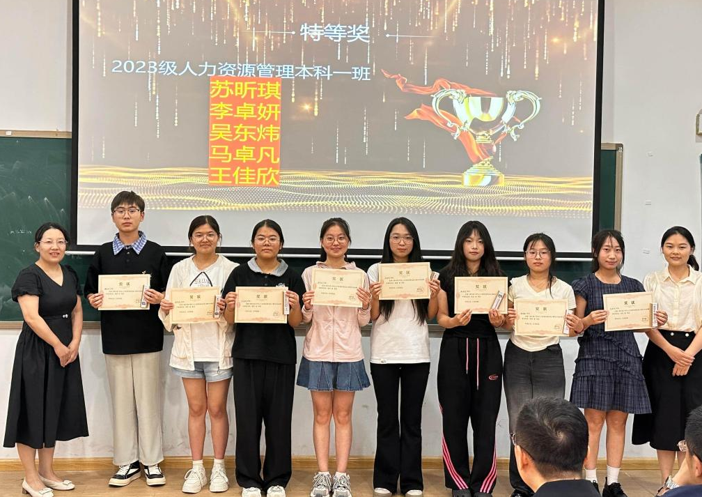 随后,会议对第十届中国大学生人力资源管理创新实践大赛(HRU10)校内选拔赛进行了总结与复盘,并对获奖学生给予表彰与奖励。其中,苏昕琪、李卓妍、吴东炜、马卓凡、王佳欣、乔胜慧、梁家玮、张函琪、贾雅丹等同学荣获校赛特等奖,李碧兰、何新阳、宋艺果、梁沅慈等同学,分别荣获校赛一、二等奖。