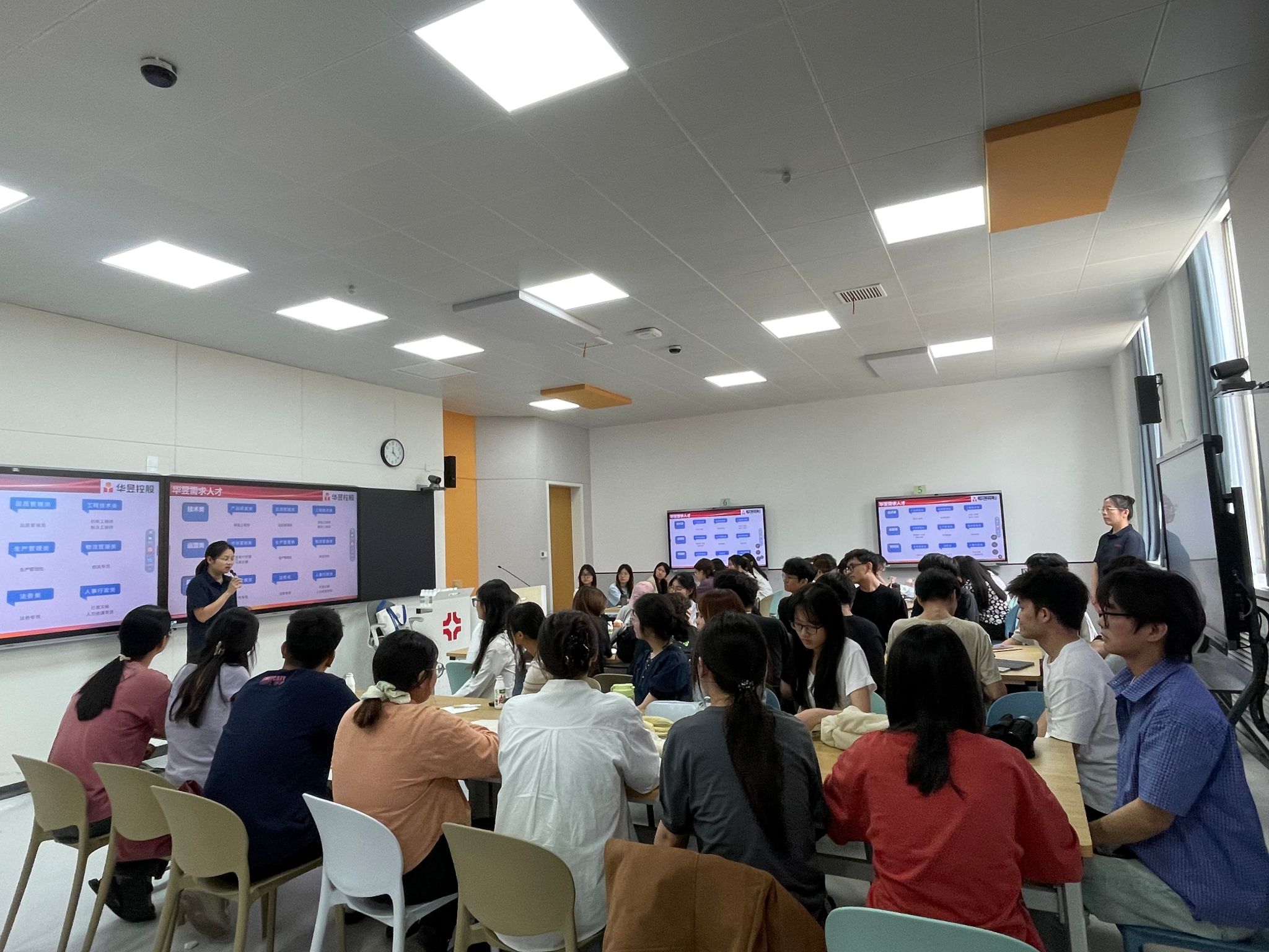 课堂上,华昱控股人力资源总监李娟女士作为主讲嘉宾,围绕公司发展历程、企业定位、产业体系、发展规划、企业文化、管理机制以及大学生职业规划等多方面内容进行了全面且深入的介绍。分享会还设有互动环节,学生就李总提出的问题进行回答。整个分享过程中,师生们全神贯注,认真聆听,不时记录重要信息,展现出对本次分享会的高度重视。