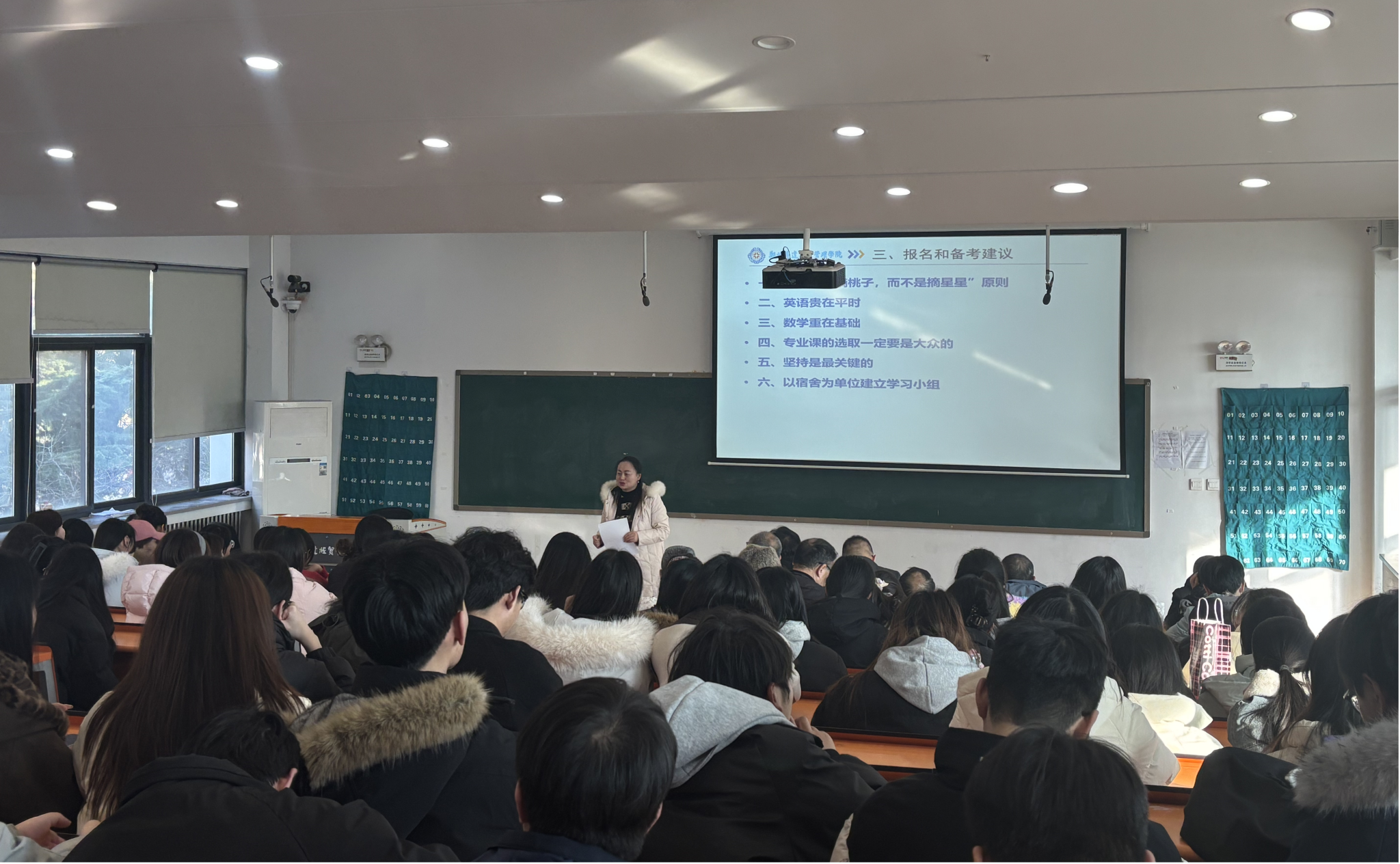 为落实精准指导,在会上董主任向同学们一一介绍了教研室各位老师的毕业学校与专业,并初步讲解了即将实施的“考研导师制”方案。该方案旨在通过师生双向选择,为每位备考同学配备一位考研导师,在备考全过程提供个性化指导和疑问解答,构建常态化的支持体系,此举引起了同学们的浓厚兴趣和热烈期待。
