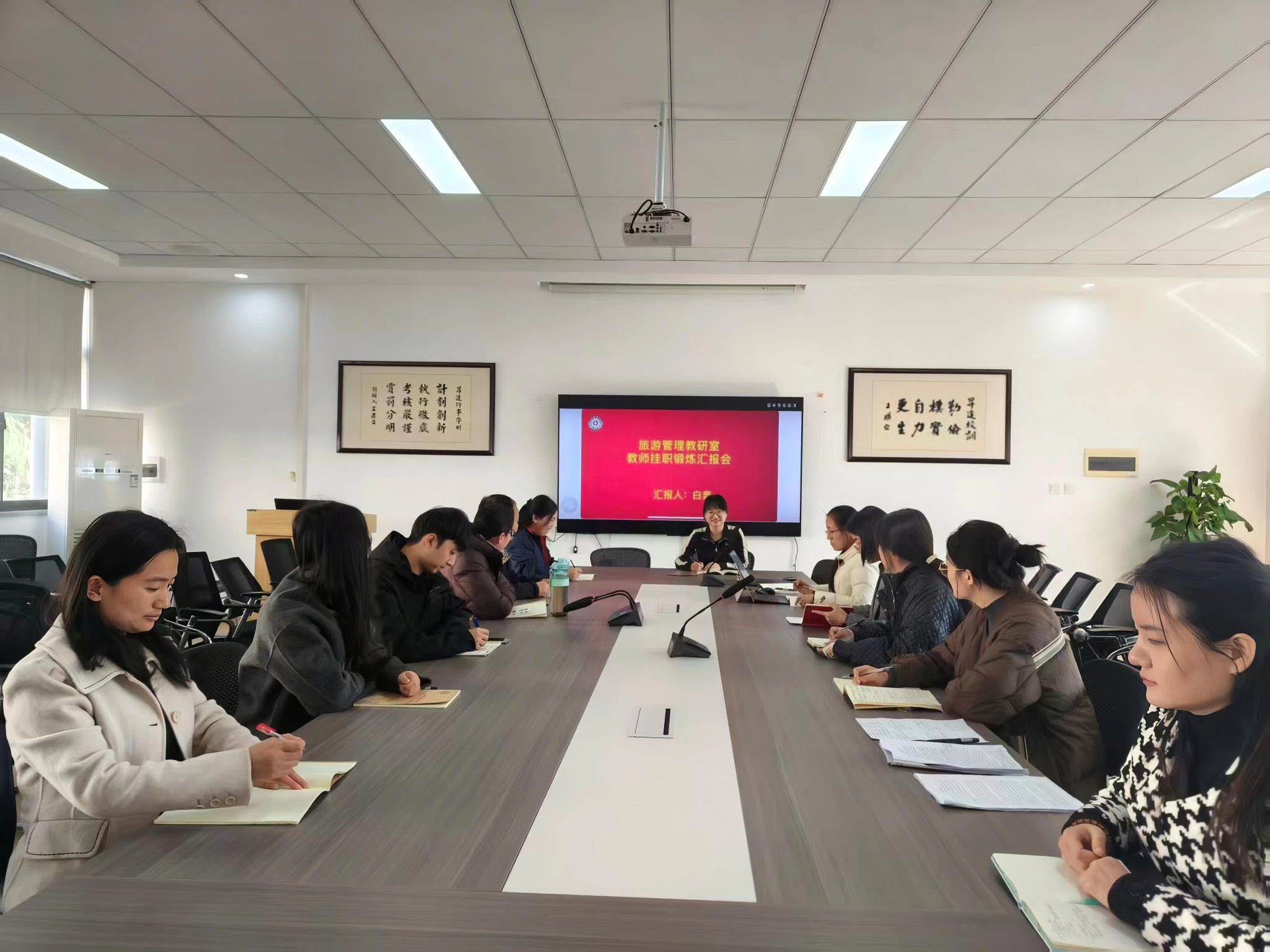 为深化产教融合,强化“双师型”教师队伍建设,推动教学科研与社会服务紧密结合,于2025年12月12日下午在2号楼209会议室成功举办了旅游管理专业教师挂职锻炼汇报交流会,旅游管理专业全体教师出席了本次会议。