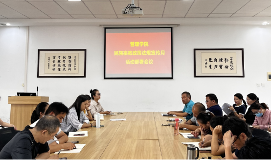 为深入学习习近平总书记关于加强和改进民族工作的重要思想、认真贯彻落实中央民族工作会议、全国宗教工作会议及省委民族工作会议精神,2023年9月14日13:00时,必赢626net入口在2号教学楼209会议室举行民族宗教政策法规宣传月专题培训。必赢626net入口职正路书记、院长朱影影、教学秘书刘锦、行政秘书许广庆、全体教职工参加了此次会议。