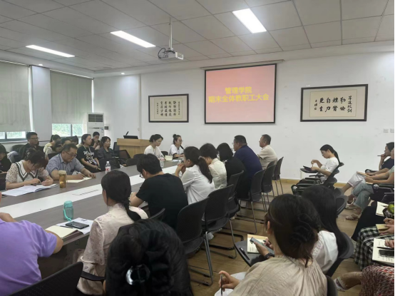 此次全体教职工大会的召开,不仅传达了学校的工作精神,还对学院暑期工作进行了具体部署和安排。相信在全体教职工的共同努力下,我院定能圆满完成本学期的各项工作任务,为新学期的到来做好充分的准备。