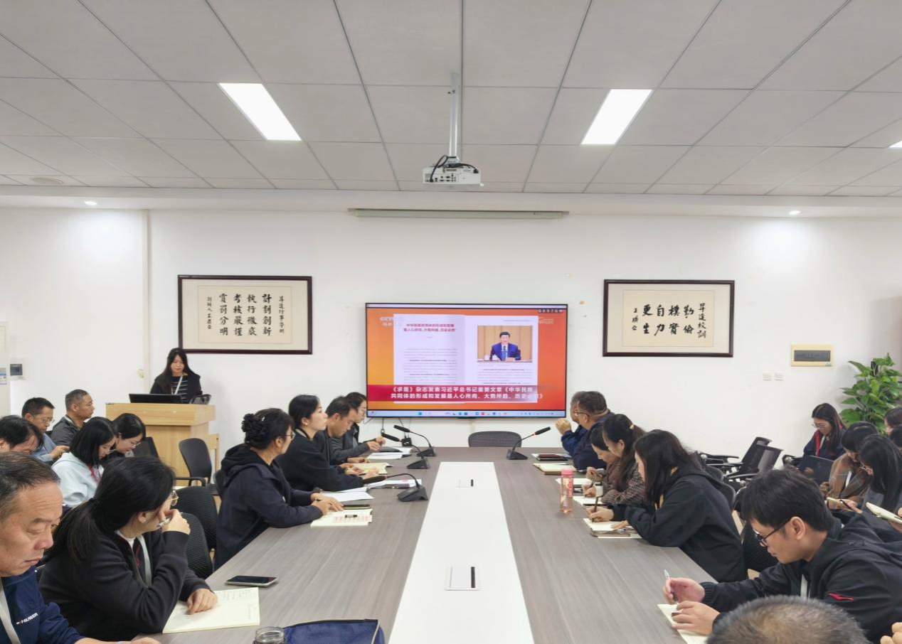 10月9日下午,必赢626net入口组织全体教职工在教学2号楼209会议室集中政治学习,深入学习习近平总书记在《求是》杂志发表的重要文章《中华民族共同体的形成和发展是人心所向、大势所趋、历史必然》。会议由学院党委书记职正路主持。