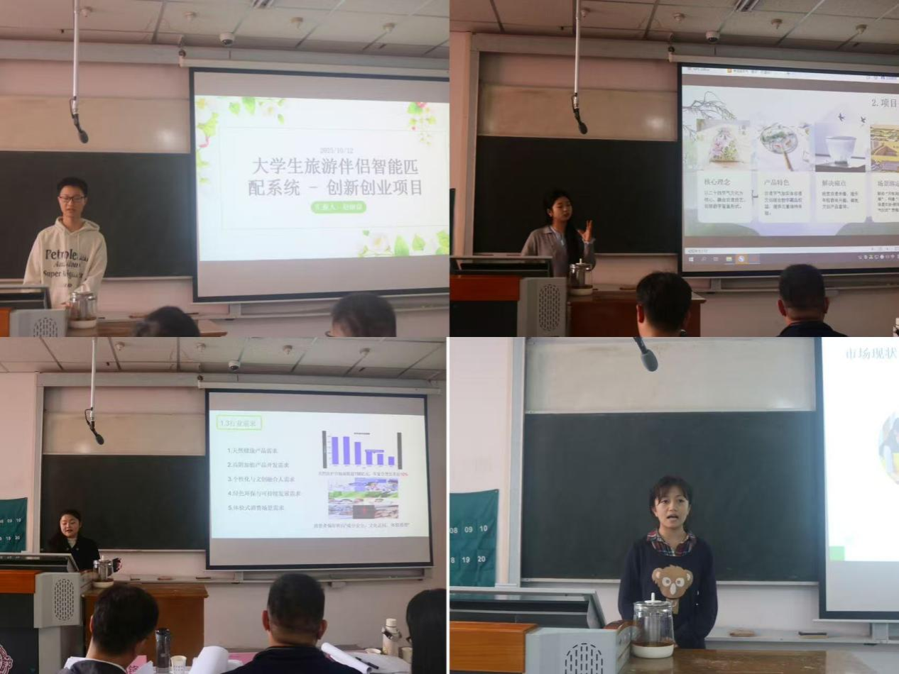 随后,比赛有序推进,各参赛团队代表依次上台汇报自己的项目,他们通过精彩的演讲、详实的ppt展示和生动的产品演示,将自己团队的创新理念呈现给评委和观众。接着进入问答互动环节,评委针对项目关键问题进行提问,考验团队对项目的把控深度与应变能力,最后评委结合学生路演表现与问答情况等现场进行打分,并对各个项目团队提出针对性的建议。