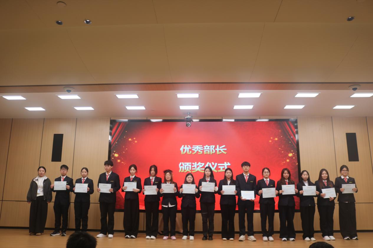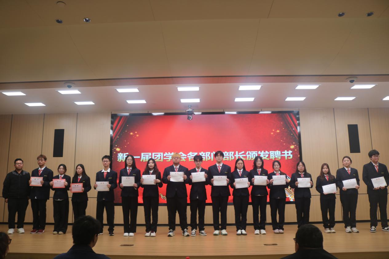 团委常务副书记马超老师为新一届团学会各部门部长颁发聘书并合影留念。