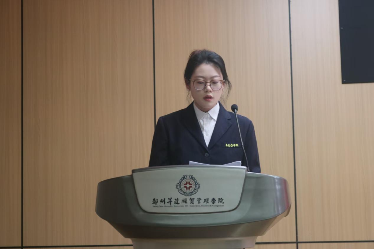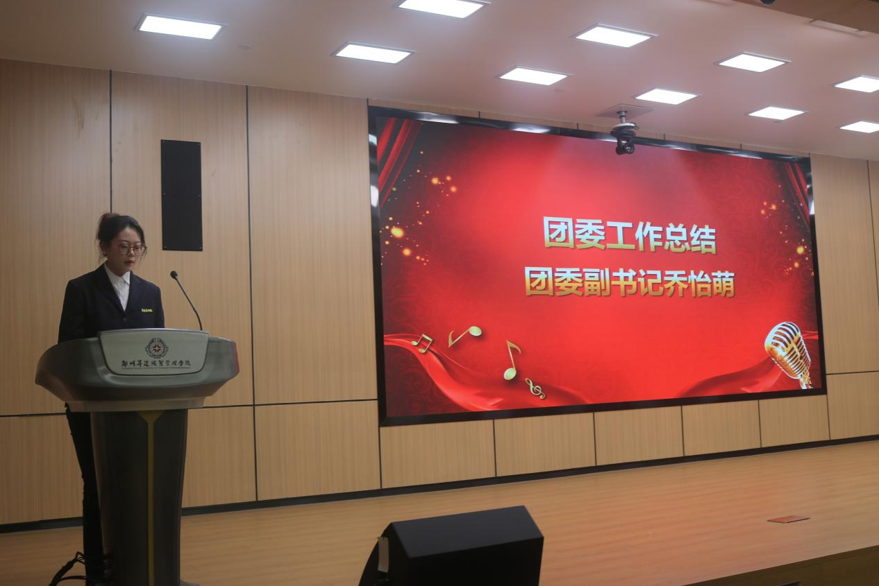第27届团委副书记乔怡萌学姐作上学年团委工作总结。她回顾过去一年团委在思想建设、组织建设、志愿服务等方面的工作成效。同时,她对新一届成员寄予厚望:要以团学会为家,以学院发展为己任,认真履行职责,传承团学队伍的优良品质,共同为学院团学工作再上新台阶而奋斗。