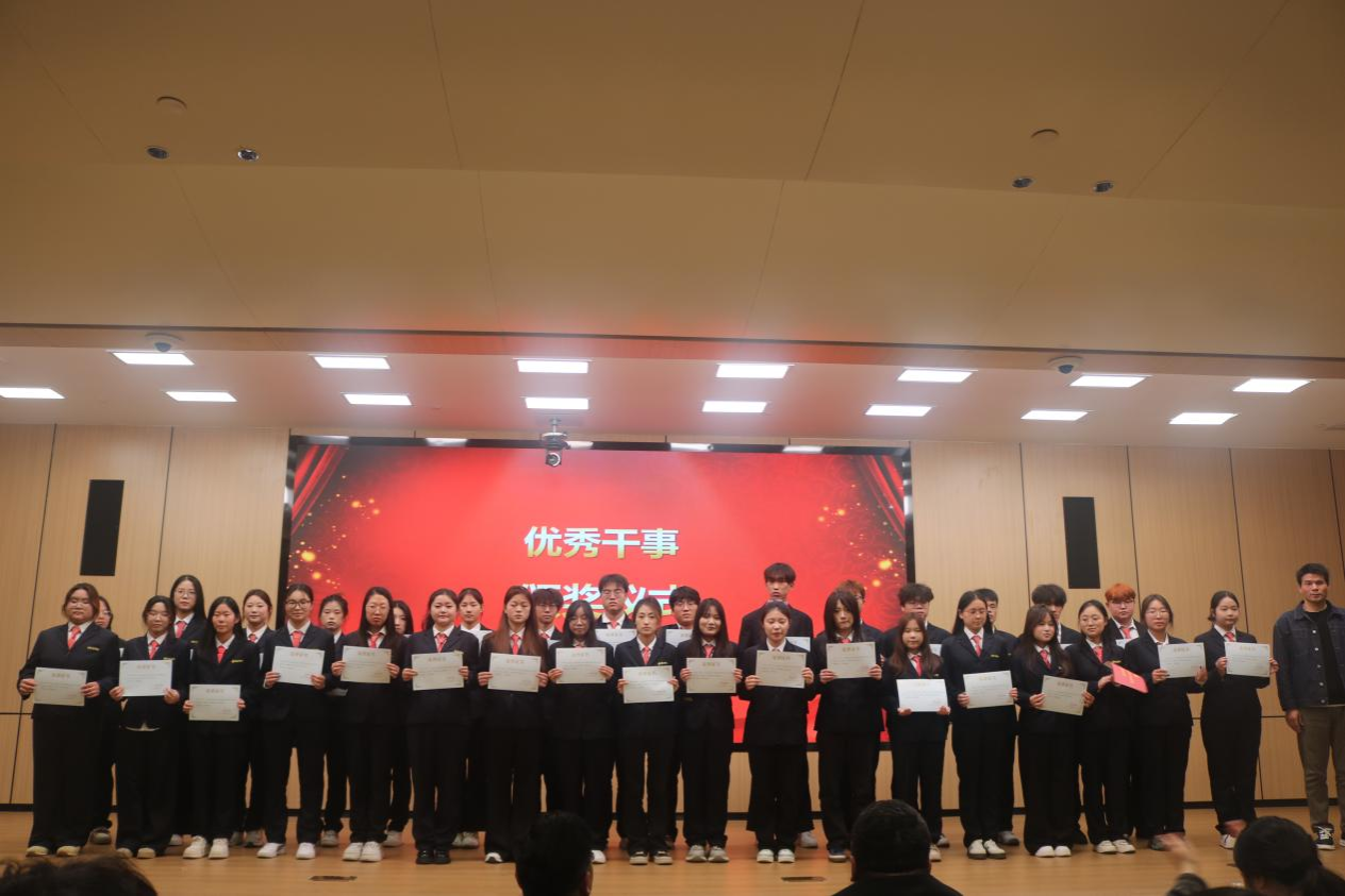 夏雁兵老师为第27届团学会的优秀部门、优秀部长颁发证书,任素伟老师为优秀干事颁发证书。