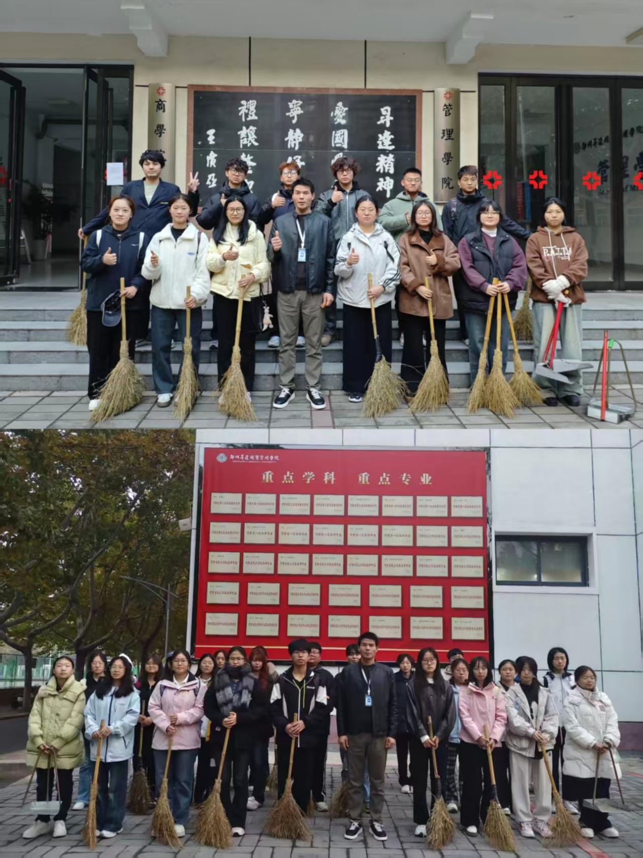 “手握锄头耕岁月,肩扛日月写春秋”,从晨光熹微到星河满天,每一份坚守都在点亮人间烟火气。劳动是中华民族的传统美德,也是我校养成教育的一个特色活动。为积极响应学校文明礼貌月的号召,营造“劳动创造幸福,实干成就梦想”的浓厚劳动氛围,我院从10月初至今,持续开展了“行思结合,以劳树德”文明礼貌月系列活动。辅导员老师和同学们一起积极投身到校园劳动实践中,化身“校园美容师”,在身体力行中体验劳动快乐、感悟劳动价值。