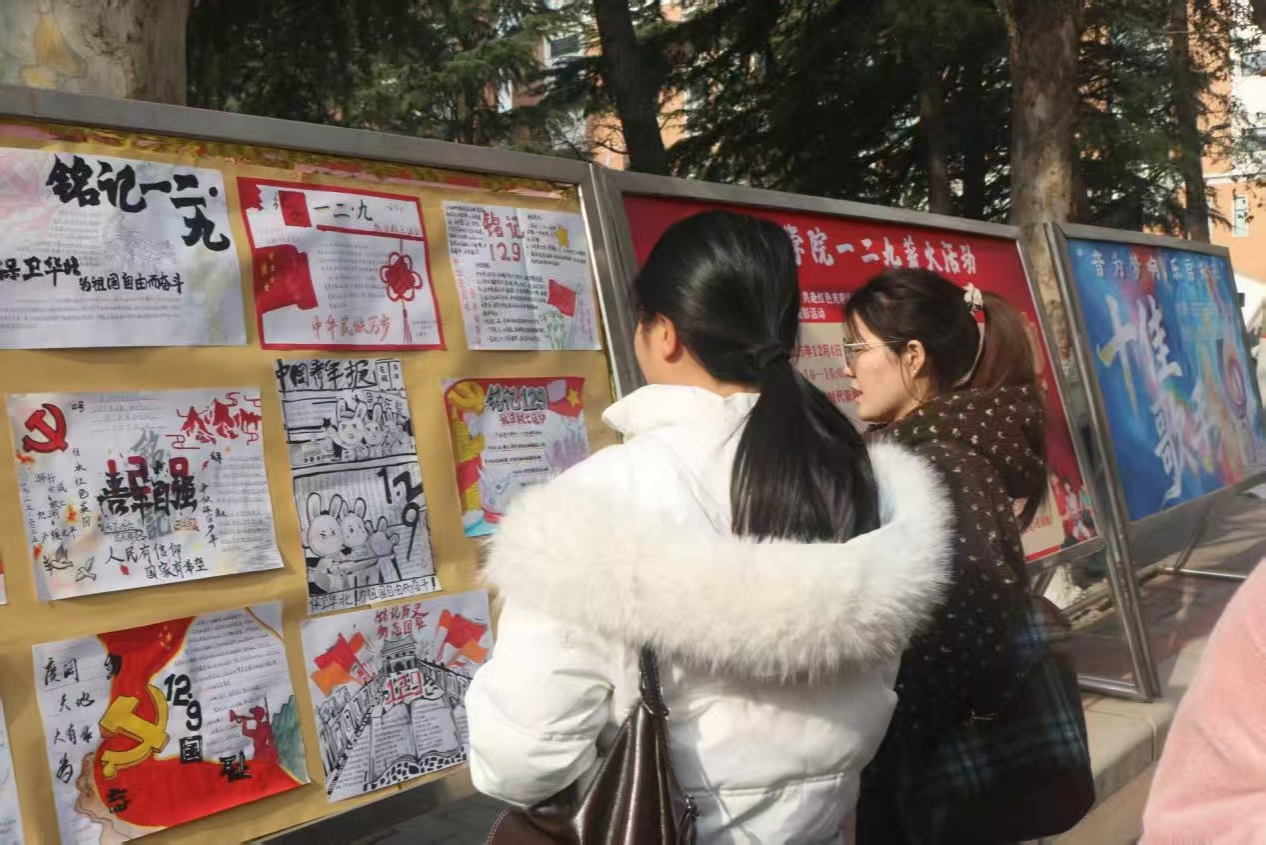 驻足凝望,一幅幅作品生动呈现在展板上:有的重现北平学子振臂高呼的壮烈场景,带人重回那段热血沸腾的岁月;有的深入诠释爱国救亡精神在新时代的传承,展现青年一代的使命接续;也有的直抒胸臆,表达新时代青年的报国之志与赤子情怀。作品主题鲜明,充分体现思想性、艺术性与创造性的有机统一。