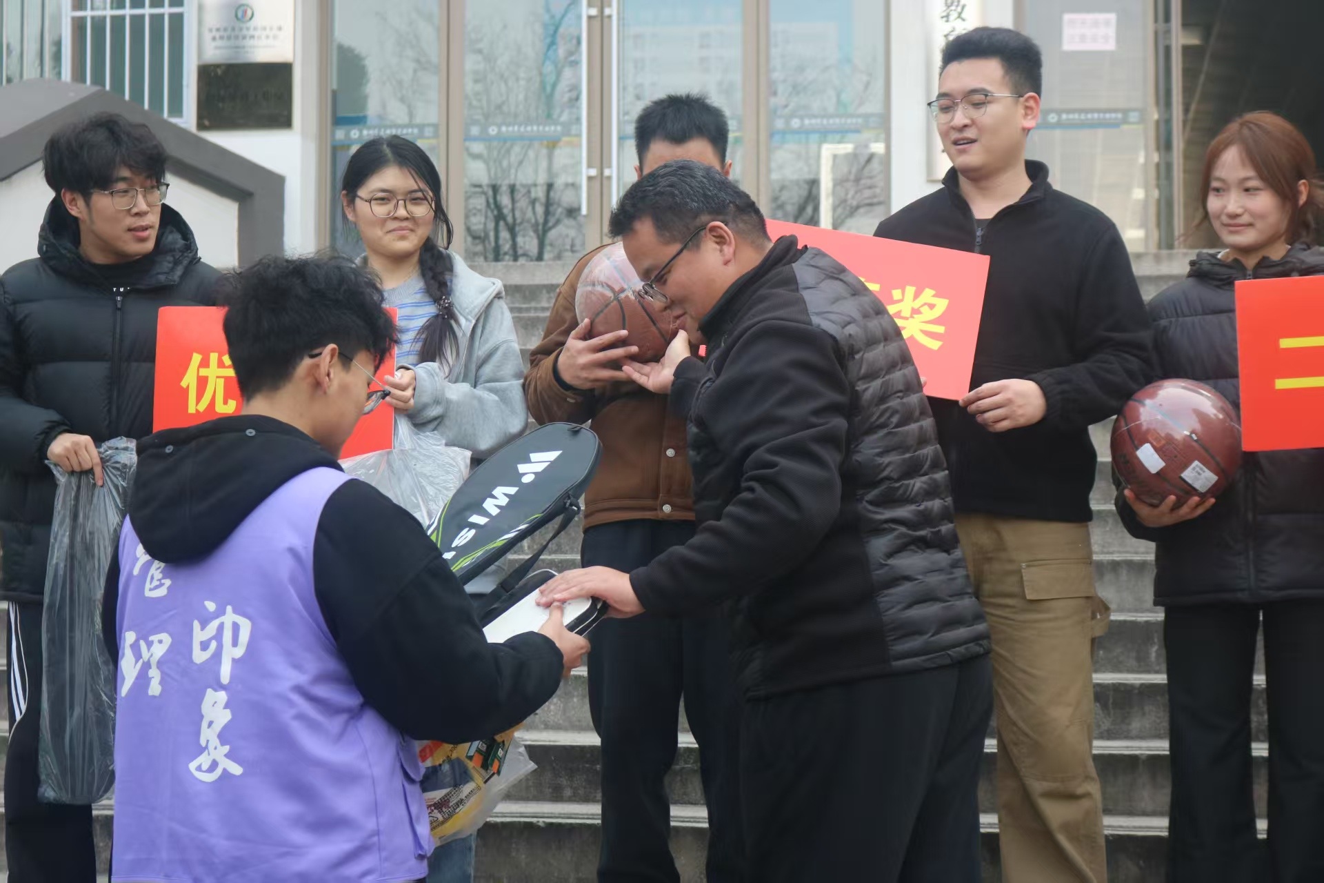 经过几轮的激烈角逐,四个实力强劲的班级,通过1V1的比拼在一番较量之下选拔出本次比赛的冠军。各班级的最终排名也随之揭晓,第一名:25级工商管理专升本三班和25级工商管理专升本四班,第二名:24级旅游管理本科一班和24级旅游管理本科二班,第三名:24级大数据管理与应用本科三班,第四名:25级工商管理专升本一班和25级工商管理专升本二班,热烈祝贺以上班级在本次比赛中取得优异的成绩,并由必赢626net入口党委书记职正路同志和必赢626net入口党委副书记许广庆老师为获奖班级颁发奖品。