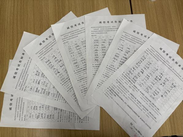随后,各班级组织学生签署诚信考试承诺书签字仪式。同学们逐一在《诚信考试告知承诺书》上郑重签名,以书面形式承诺遵守考试纪律、杜绝作弊行为,将诚信准则落实到实际行动中。签满姓名的承诺书,不仅是一份约定,更是青年学子对自我的责任与约束。