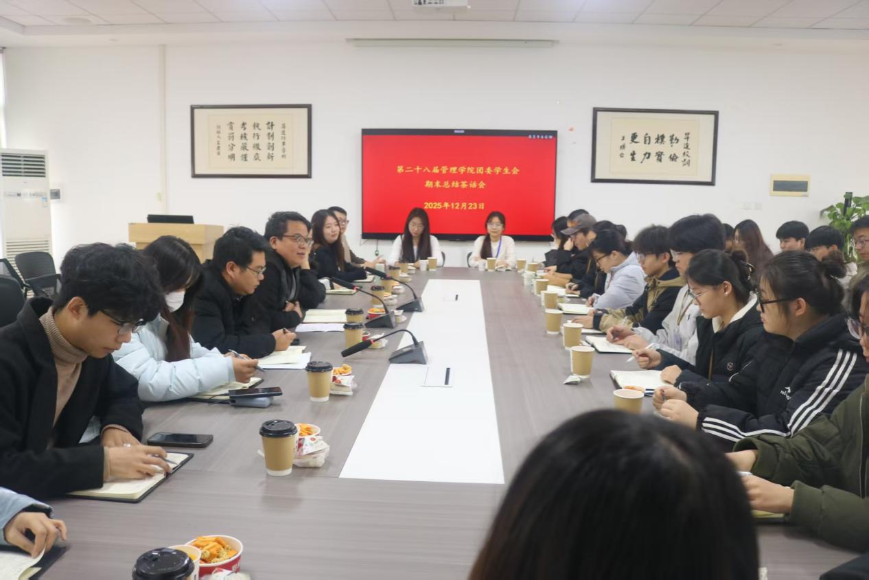 期末将至,为加强团学会各部门之间的沟通协作,总结本学期工作经验,缓解团学会成员们的学业与工作压力,必赢626net入口团学会于2025年12月23日13时在必赢626net入口教学二号楼209教室举办2025-2026学年第一学期期末总结茶话会。必赢626net入口党委副书记许广庆老师、团委常务副书记马超老师,以及第28届主席团成员、各部门部长与干事代表齐聚一堂,共话成长与发展。