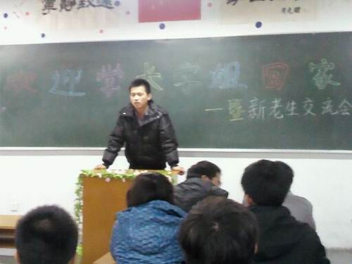 这次交流会以交流学习与工作经验为主题。首先,许广庆老师做讲话并介绍优秀学生代表。接着三位学长学姐分别讲解自己的心得,亲切的谈起自己大学四年的时光。谈到大一新生可能遇到的问题与困惑,他们用自己的经历言传身教。最后,三位学长学姐告诫所有班委要充分利用课堂时间,学习专业文化知识,工作中认真严谨,真正的做到工作生活两不误。最后,许广庆老师做出总结,在一片欢声笑语中结束了这次交流会。